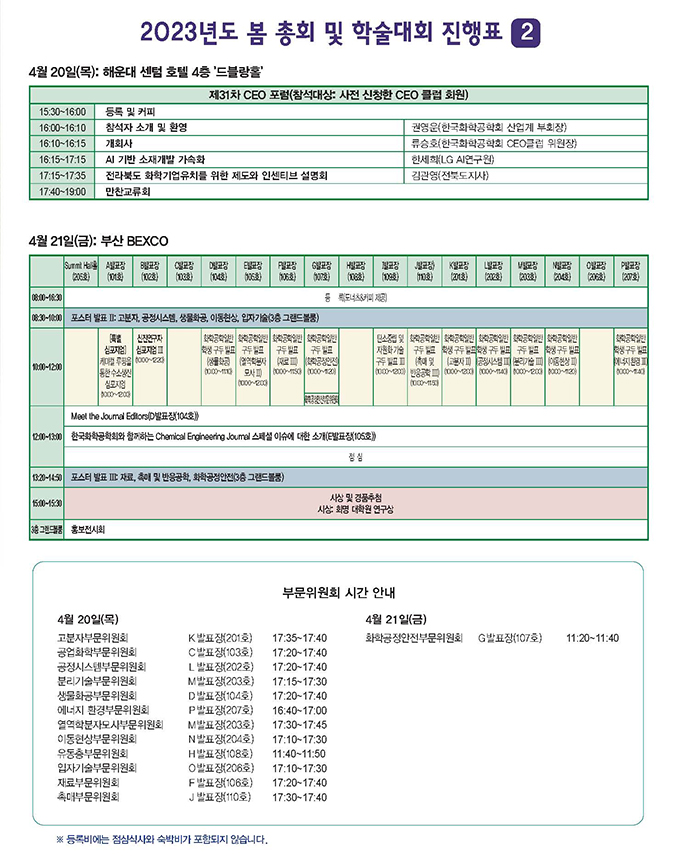 프로그램 확정 이후 발표취소가 불가능하오니 양지하시기 바랍니다(첨부파일을 확인하여  함 검색하셔서 발표 시간을 확인하시기 바랍니다).