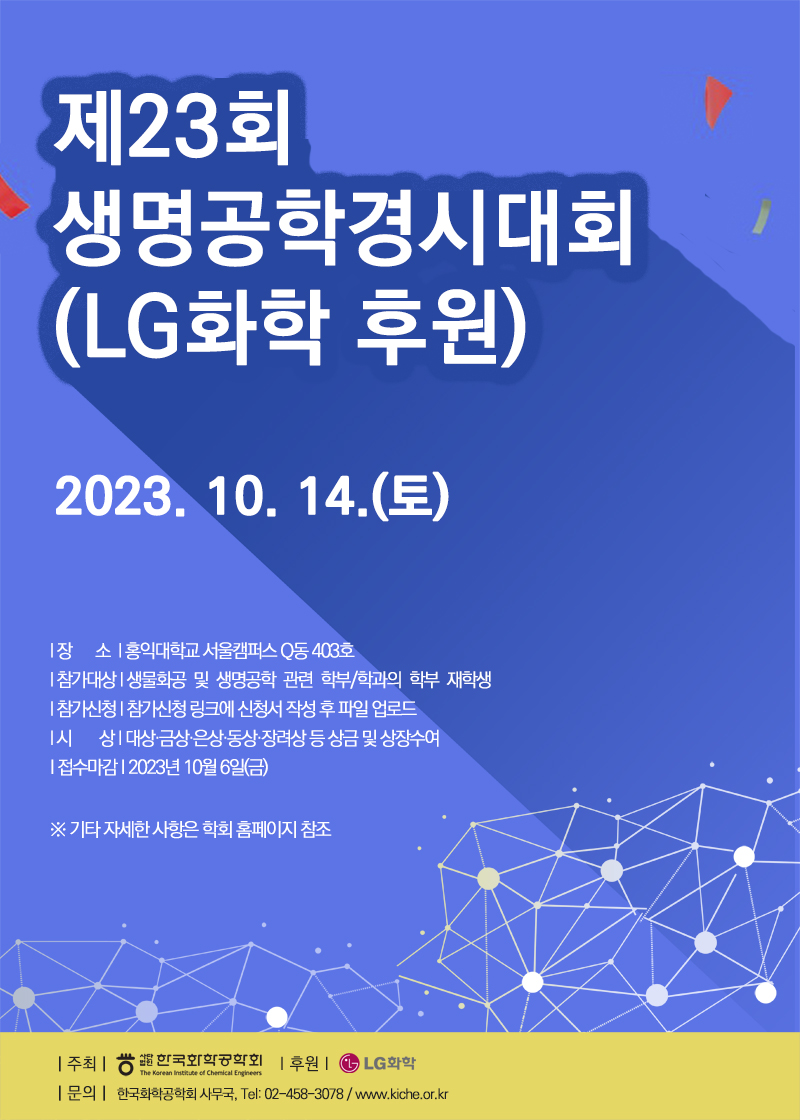 제23회 한국화학공학회 생명공학경시대회(LG화학 후원) 안내
