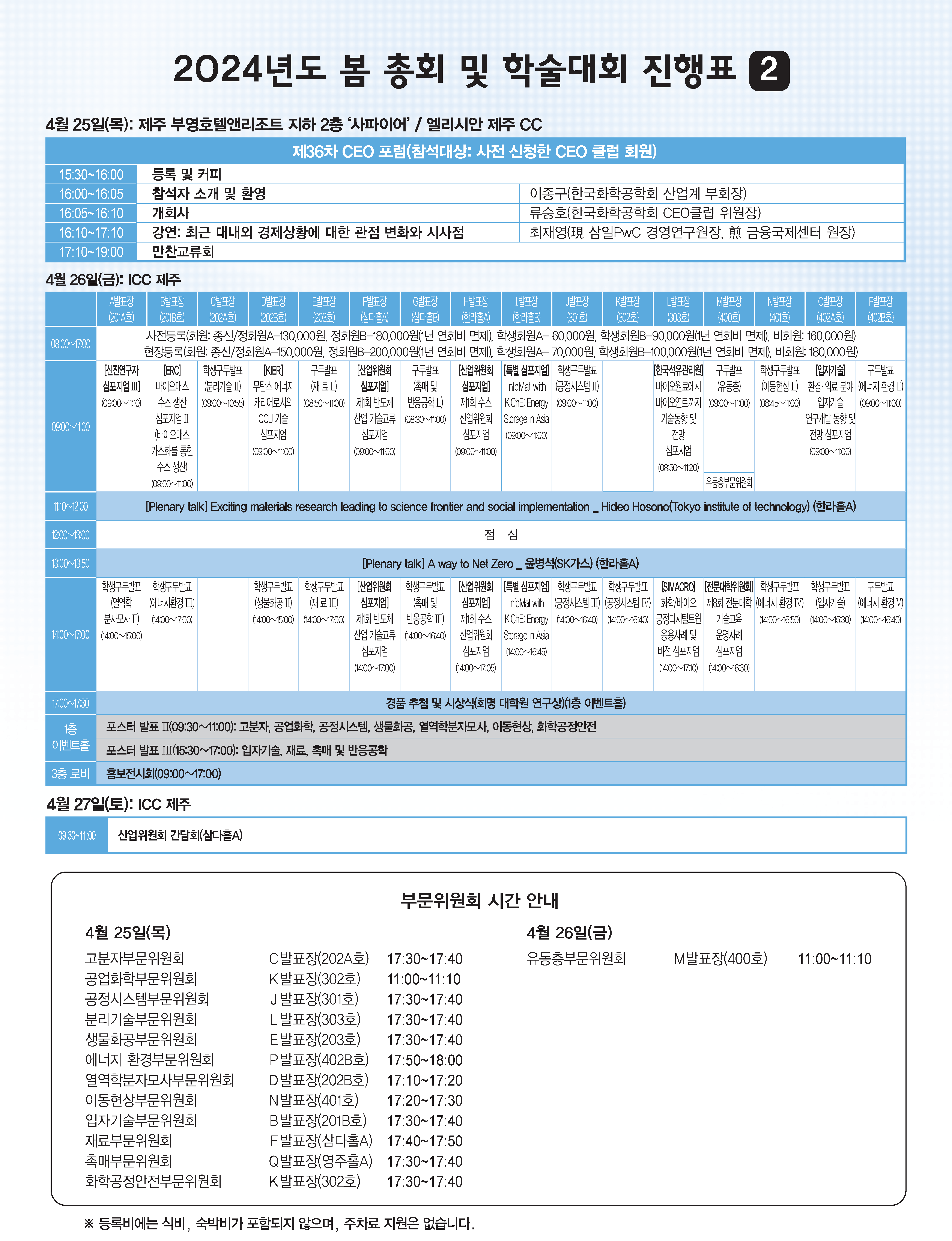 [2024년도 봄 총회 및 학술대회] 진행표(화학공학 일반 구두 발표/포스터 발표 프로그램 첨부)