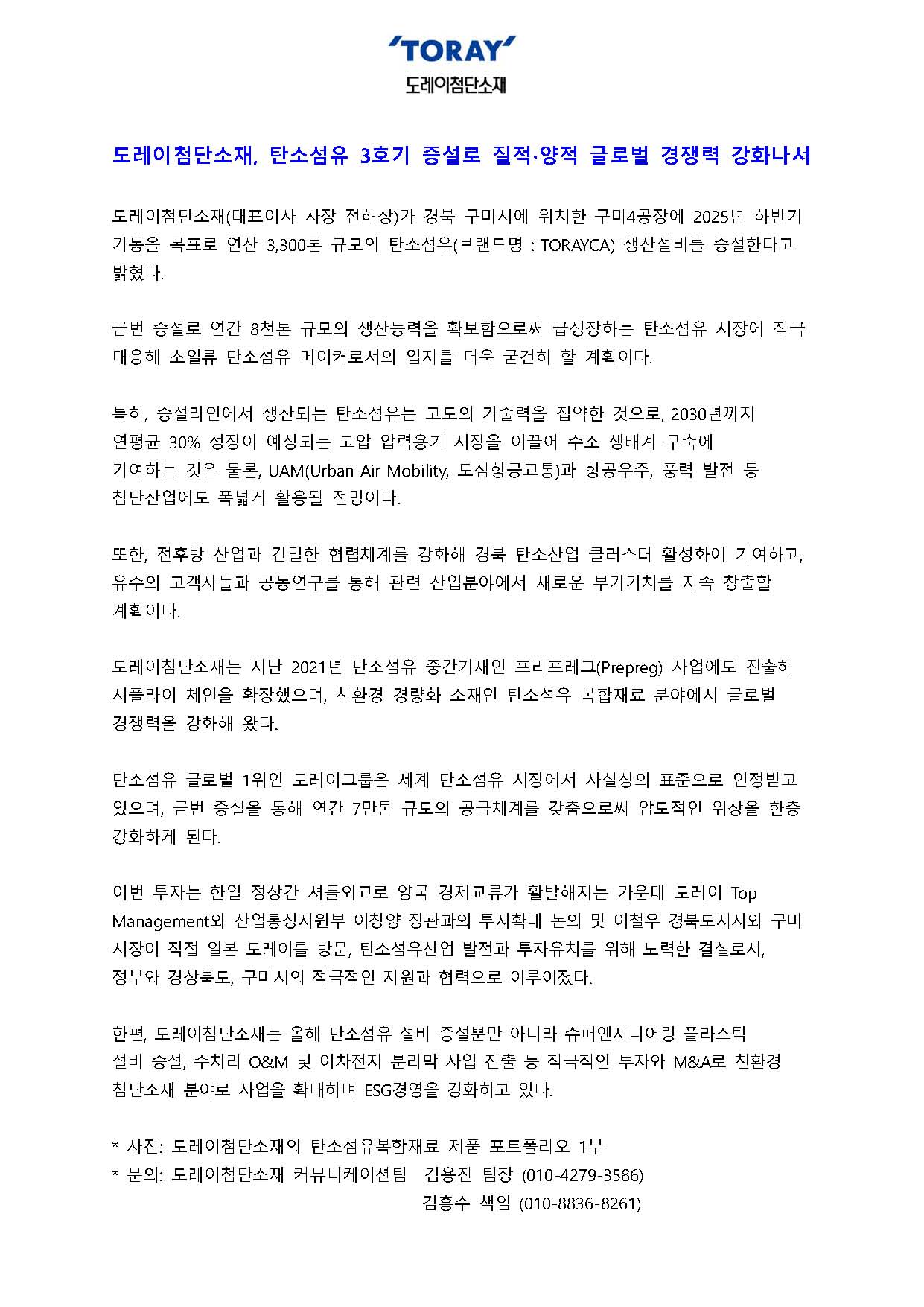 [도레이첨단소재] 탄소섬유 3호기 증설