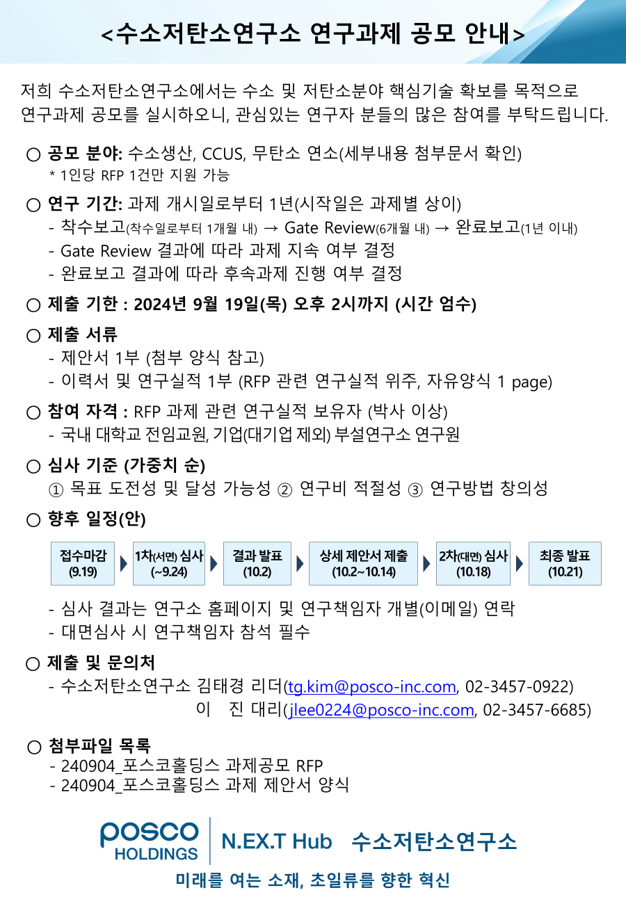 [포스코홀딩스] 미래연 수소저탄소연구소 연구과제 공모