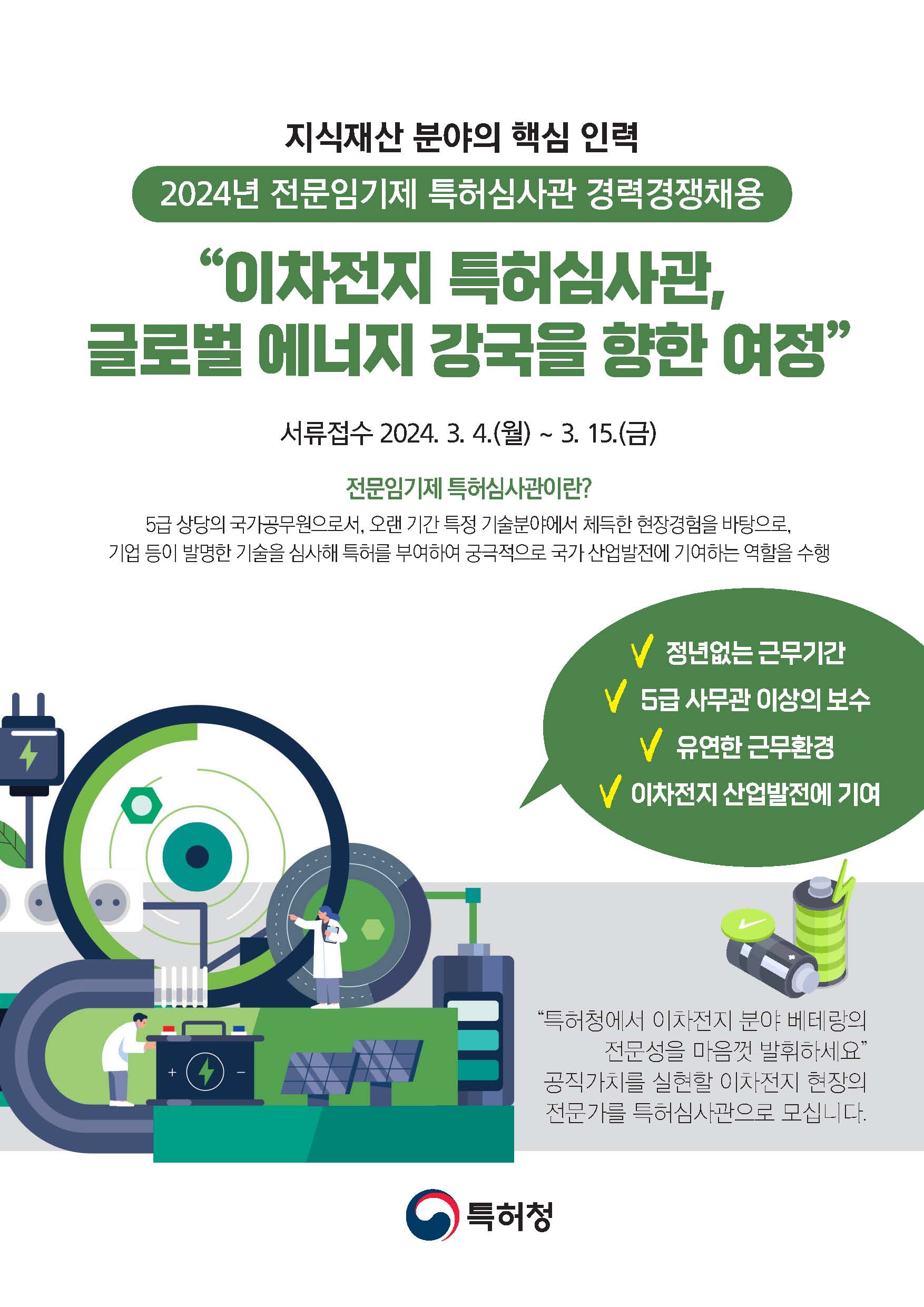 [특허청] 이차전지 분야 전문 특허심사관 채용 안내
