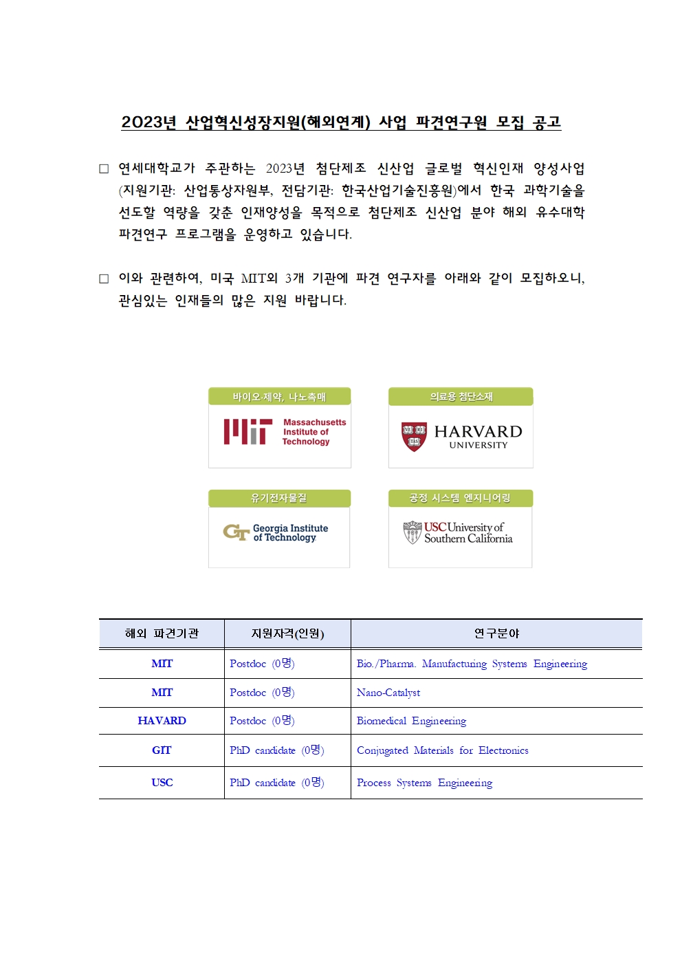 산업혁신성장지원(해외연계) 사업 파견연구원 모집 안내