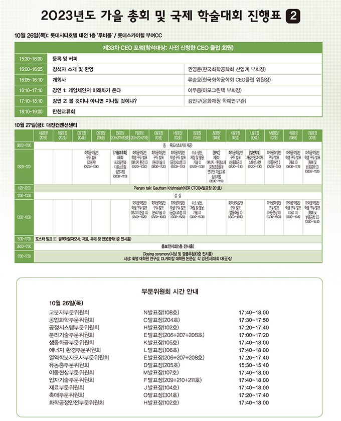 2023년도 가을 총회 및 국제 학술대회 프로그램이 아래와 같이 확정되었습니다. 프로그램과 관련하여 문의사항이